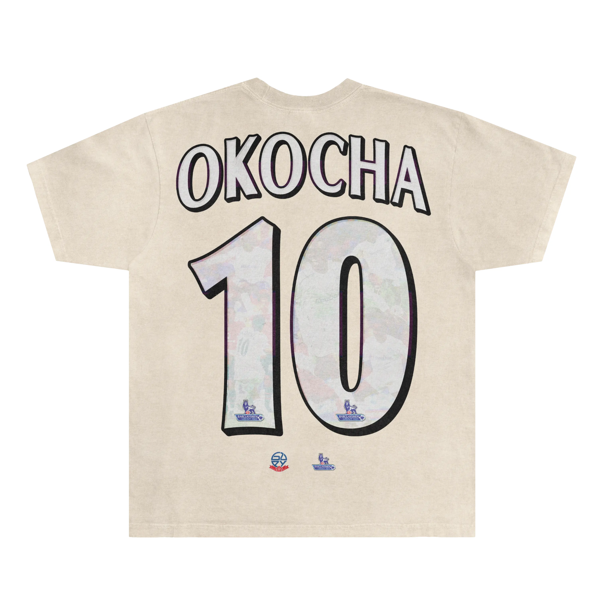 Short sleeve cotton t-shirt with oversized Jay-Jay Okocha inspired front and back print  featuring graphics inspired by the classic Bolton Wanderers 03/04 season by the Nigerian winger. So good they named him twice. From the streets of Paris to Bolton, in a transfer that's still illogical yet makes perfect sense at the same time. Reebok sponsor, Big Sam at the helm & Jay-Jay embarrassing defenders. This really is the epitome of Barclays heritage. Perfected cut for that iconic slightly oversized, boxy fit with a dropper shoulder. It's recommended to stay true to size for an intended slightly oversized fit.