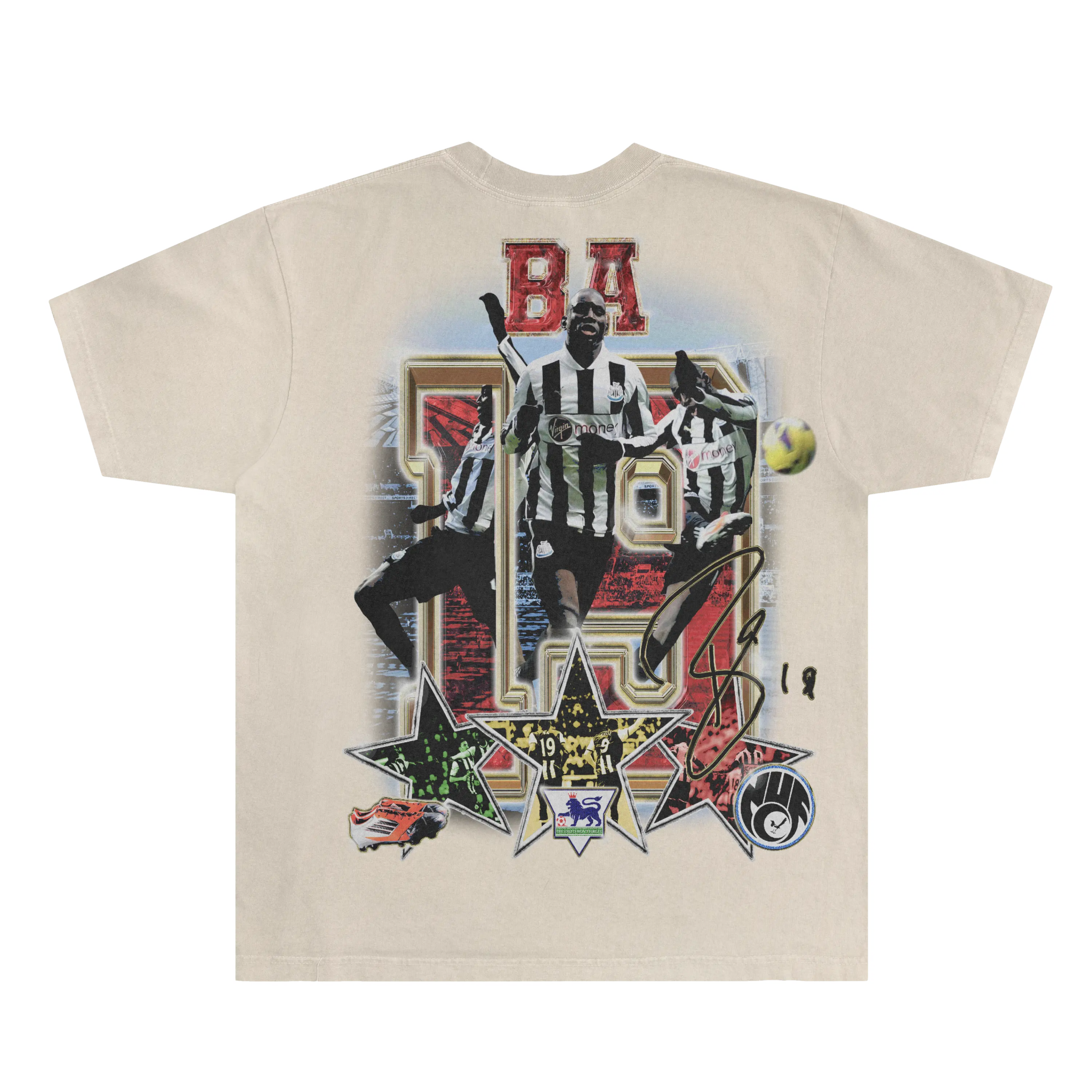 Demba Ba front and back print featuring front & back graphics inspired by the iconic Newcastle United number 19. Perfected cut for that iconic slightly oversized, boxy fit with a dropper shoulder. It's recommended to stay true to size for an intended slightly oversized fit.