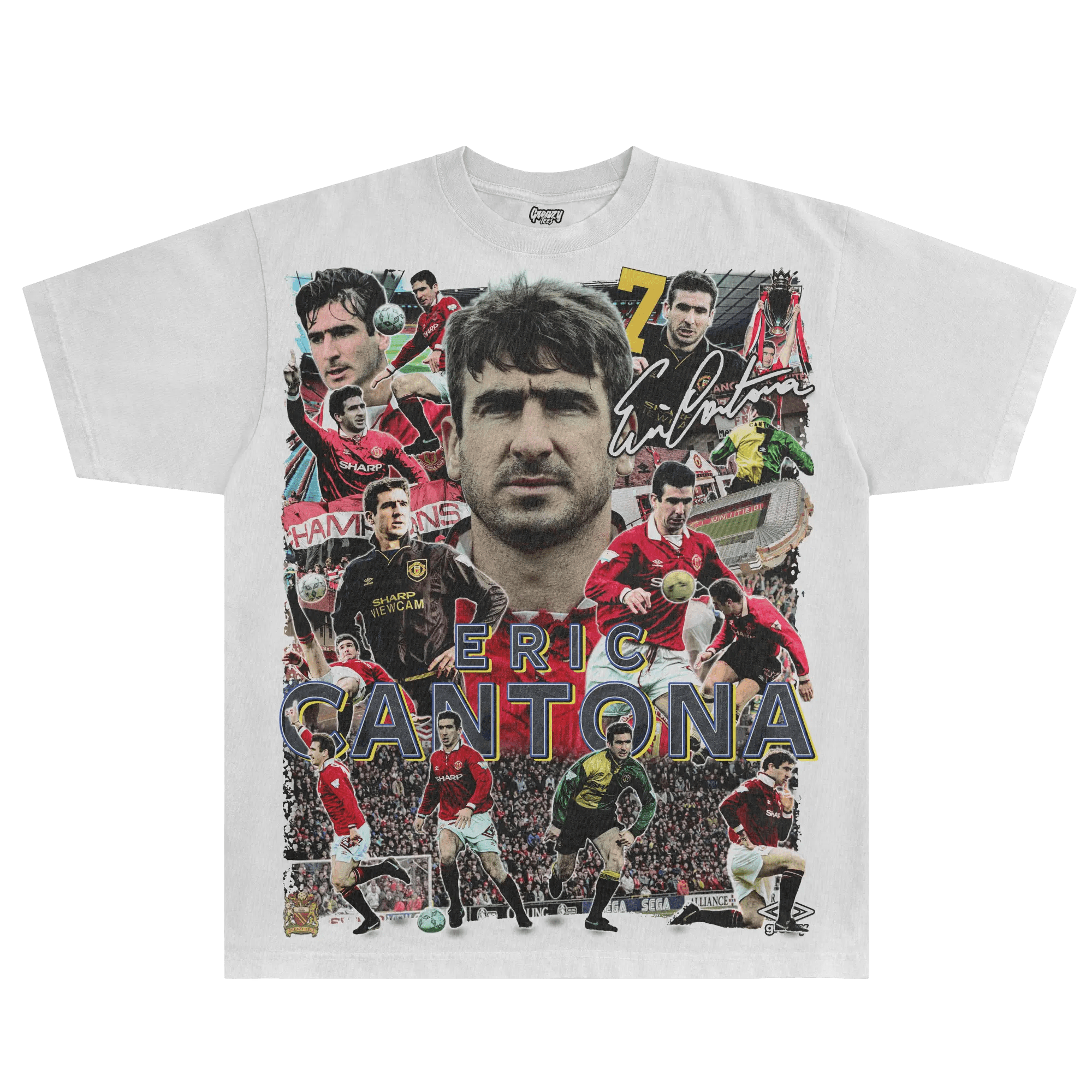 Short sleeve cotton t-shirt with oversized Eric Cantona inspired front and back print  featuring graphics inspired by the Manchester United talisman. The King! Perfected cut for that iconic slightly oversized, boxy fit with a dropper shoulder. It's recommended to stay true to size for an intended slightly oversized fit.