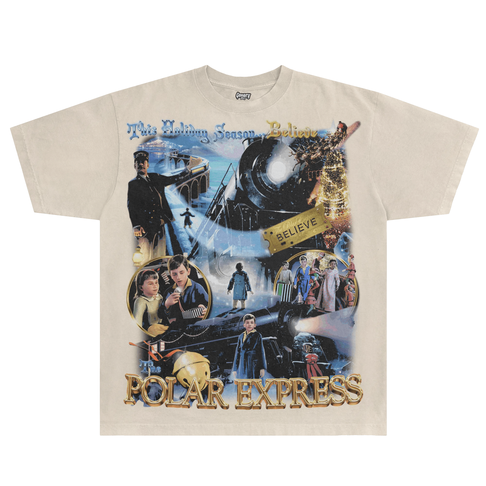 Short sleeve cotton t-shirt with The Polar Express front & back print featuring graphics inspired by the 2004 Christmas classic. Perfected cut for that iconic slightly oversized, boxy fit with a dropper shoulder. It's recommended to stay true to size for an intended slightly oversized fit.