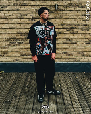 Short sleeve cotton t-shirt with oversized Get Out inspired front and back print featuring graphics inspired by the 2017 psychological thriller. Not often does a film capture such an eery feeling throughout, but Jordan Peele struck gold with this one. A thought-provoking masterpiece sprinkled with a dash of dark humour. Perfected cut for that iconic slightly oversized, boxy fit with a dropper shoulder. It's recommended to stay true to size for an intended slightly oversized fit.