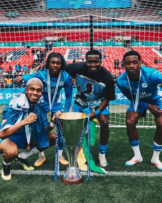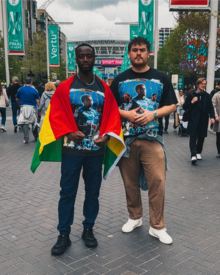 Short sleeve cotton t-shirt with oversized Kwame Poku inspired front and back print featuring graphics inspired by Peterborough United's 2025 Vertu Trophy victory. 2 TIME. 🏆🏆 Up the Posh man, now & forever. Perfected cut for that iconic slightly oversized, boxy fit with a dropper shoulder. It's recommended to stay true to size for an intended slightly oversized fit.
