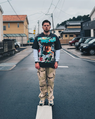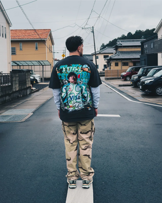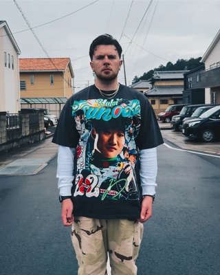 Short sleeve cotton t-shirt with oversized Yuki Tsunoda inspired front and back print featuring graphics inspired by Japanese F1 driver. Taking product pics taken on the first corner of Suzuka is so extra, but the devil is really in the details. Perfected cut for that iconic slightly oversized, boxy fit with a dropper shoulder. It's recommended to stay true to size for an intended slightly oversized fit.